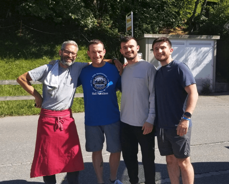 He is behind schedule and has only 4 hours to complete the last 20 miles of the run.  Dave, his buddy and last member of his support team will run with him for 6 miles, then Sam and Jack will bike beside their Dad for the remainder of the 18 miles covered. Pace setting, encouraging – especially on the final stretch – while commenting on the incredible beauty of the Swiss Alps that Dad was probably too focused to enjoy at the moment. Any conversation will help drown out the heart’s rhythmic pounding in his ears. Mike passes the first cutoff at mile 8, and just passes the next cutoff at mile 15.5 – by only 30 seconds.  To make the next cutoff, Mike would have to cover the next 4 kilometers in 20 minutes.  And this is not a flat road, these are mountain miles.  He arrived at the cutoff 15 minutes too late.  With 94% of the full Swissman completed, Mike’s day was over.